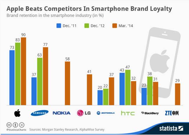 For a long-term scenario, we have to look at the product and at the developments in future sales. As I'm sure everyone is very familiar with the product (even with a miserable ad budget of $1.8 billion in 2015 or 0.7% of sales) I will focus on the latter part. AAPL has reached the milestone of 1 billion active devices. With a customer retention rate close to 90% we can easily estimate future revenues for AAPL.