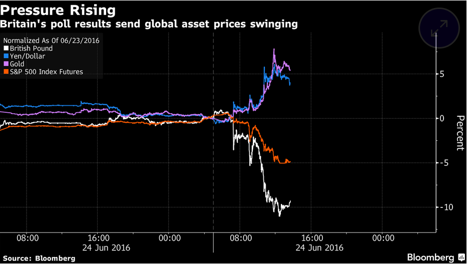 So far the news has been brutal. The British pound is down 10% and has hit a 31-year low. Oil has fallen below $48/bbl. Gold is up above $1300/oz. The Dow Jones Industrial Average was down over 500 points in early trading. In short, the markets are reacting in a similar way to what happened in September 2008 when Lehman Brothers collapsed and sent shockwaves across the global economy.