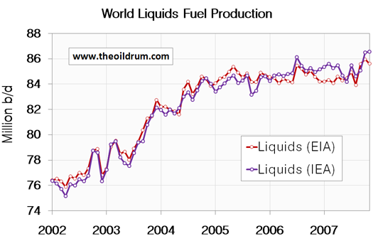 Figure 1 - World Liquids Fuel Production January 2002 - November 2007