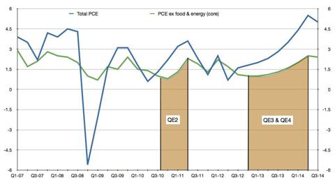 I'll admit that I'm cutting with an axe here, but the upshot is that by early to mid 2014, we'll see QE4 switched off because total PCE and real-world total CPI will be in the 5%+ range.