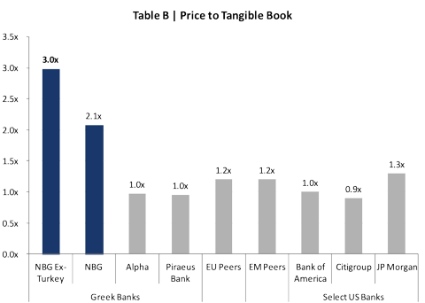- It is the most overvalued bank, not only in Greece, but as compared to other European banks and even the largest and most well-capitalized U.S. financials