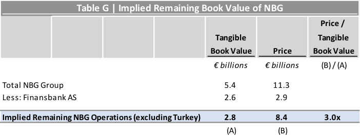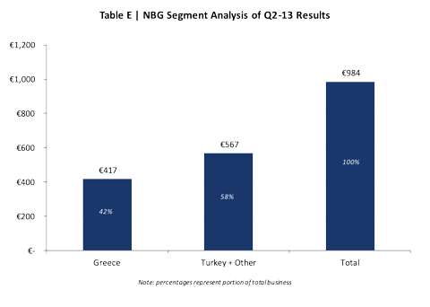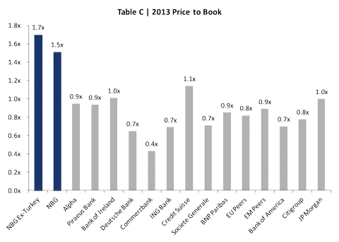 While Turkey can be an attractive market, a large portion of the value of NBG is contingent on Finansbank. Are investors really prepared to take on the meaningful risk associated with the Turkish operation as opposed to a Greek recovery? Are investors even aware that their play on a Greek recovery is not even all that Greek after all?