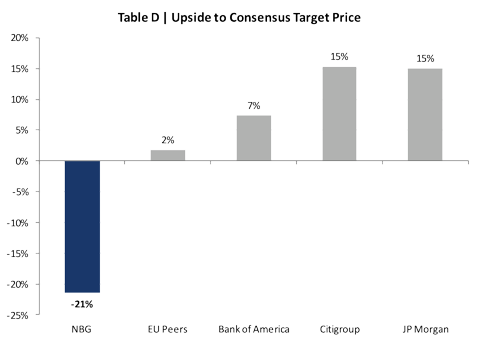 Additionally, research analyst community has placed price targets on the stocks of NBG and others - NBG has materially overshot these price targets while the other banks still offer compelling value.