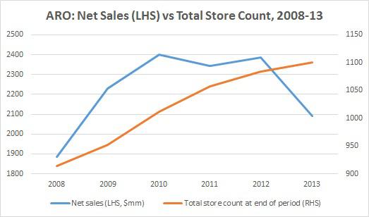 While all the non-fast fashion players have suffered in recent years, ARO has fared particularly poorly, for a couple of reasons: