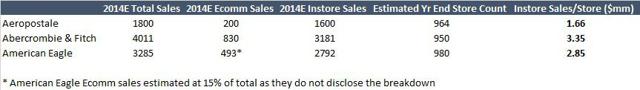 The advent of fast fashion and its impact on teen retailers like Abercrombie (NYSE:ANF), American Eagle (NYSE:AEO), ARO, as well as other specialty retailers like Express (NYSE:EXPR) and Bebe (NASDAQ:BEBE), is relatively well known, so I won't rehash too much recent history. To summarize briefly: fast fashion players utilize superior factory-to-floor operations management to update their store offerings almost as fast as new styles get designed (say, once every 2-3 weeks), in contrast to 'traditional' retailers who follow seasonal release patterns (once a quarter). The changing consumption habits amongst teens and young adults - more variety, more online purchasing, fewer mall visits - also hastened fast fashion's success, as invariably the older retailers (teen retail in particular) already possessed large in-mall store footprints and (generally speaking) were slower to pursue ecommerce aggressively, unlike the newer, more nimble fast fashion names.