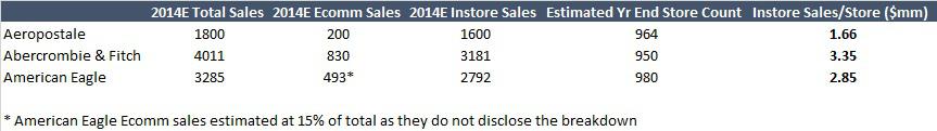 - only 'PS from Aeropostale' closing so far: the announced large store closure of 125 stores this year is exclusively the 'PS from Aeropostale' (kids) brand; this leaves management the 'core' Aeropostale branded stores, which have largely been untouched, for aggressive pruning in future years.