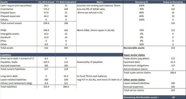 In any case, while ARO most likely still has enough cash for the next 4-6 quarters, given the amount of distress in the business, I don't think it's amiss to look at what recovery could look like if banks and/or Sycamore give up on the company after a few more tough quarters. And unfortunately for common shareholders, it does not look pretty: