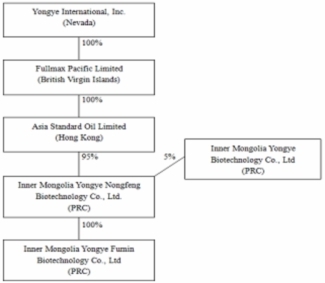 It is unclear what corporate relation Inner Mongolia Yongye Biotechology (possessors of the Yongye Group logo), and Yongye International share with each other today given that Yongye Nongfeng was supposed to have acquired the Shengmingsu production facilities from Inner Mongolia Yongye Biotechnology in 2008. Yongye International's 2010 10-K stated that Inner Mongolia Yongye Biotechnology was no longer supplying finished products (Shengmingsu) to Yongye Nongfeng: