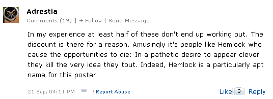 Well first, I would like to take time to delve into what dolfdekraai said; "Thanks for sharing this…You killed it for everybody." That is a powerful statement there. The commenter is saying that if it wasn't for oldschoolvalue, this deal may have gone through. The former may be hard, if not impossible to determine, but in reality it does make a lot of sense. Oldschoolvalue brought this idea to everybody's attention thus in turn, destroying the opportunity to make a quick buck.