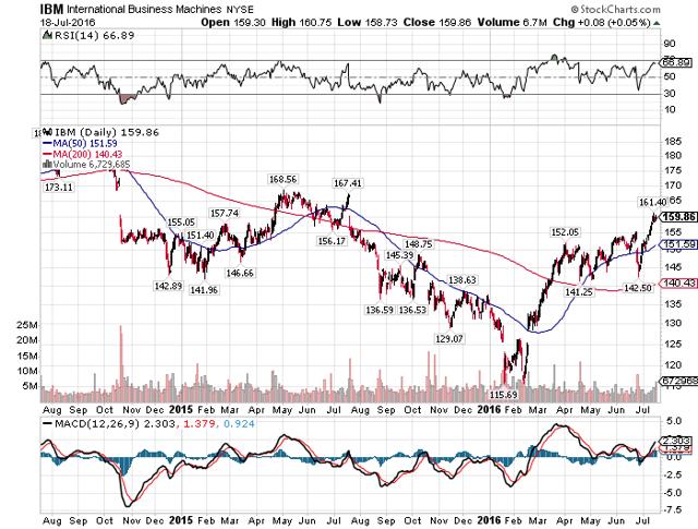 I have been a steadfast bear on tech relic IBM (NYSE:IBM) for years now. The company's epic streak of declining revenue is something I've never personally seen before and as I've lamented in the past, management teams going back 10 or 15 years have seemingly been unable to do anything other than buy back stock in a fruitless attempt to juice EPS. The lack of attention to detail to the actual business has taken its toll and for that reason, IBM was a very easy short for quite a long time. But since the stock bottomed in February it has rocketed higher from roughly $115 to its current, post-earnings price of about $163. That's an unbelievable rally and while I don't think $115 is the right price, I certainly don't think $163 is either.