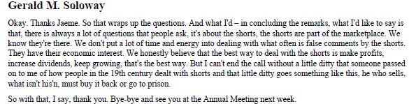 It also fits within our absolute favorite bucket of shorts - companies that publicly blame short sellers for their woes.