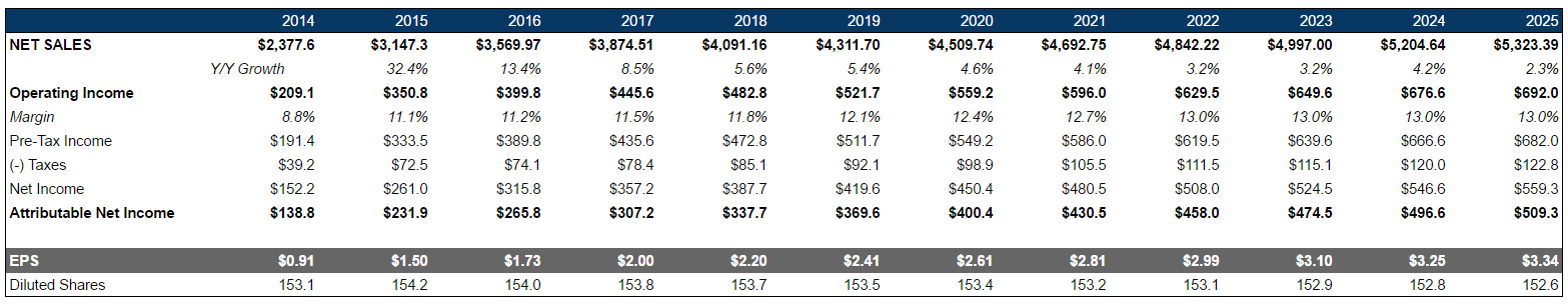 We have modified our full financial model to account for slower-than-expected domestic growth. We have included that model below.