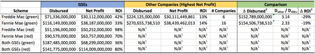 The data clearly shows this to be the case. However, the data also clearly shows that the GSEs have blown away the competition: they have returned a much higher return (ROI) for the same amount of disbursed funds, higher net profits for similar ROIs, and they have a much higher ROI than all of the other bailouts combined (36.4%/80.4% vs. 1.73%)!