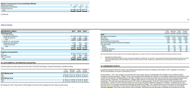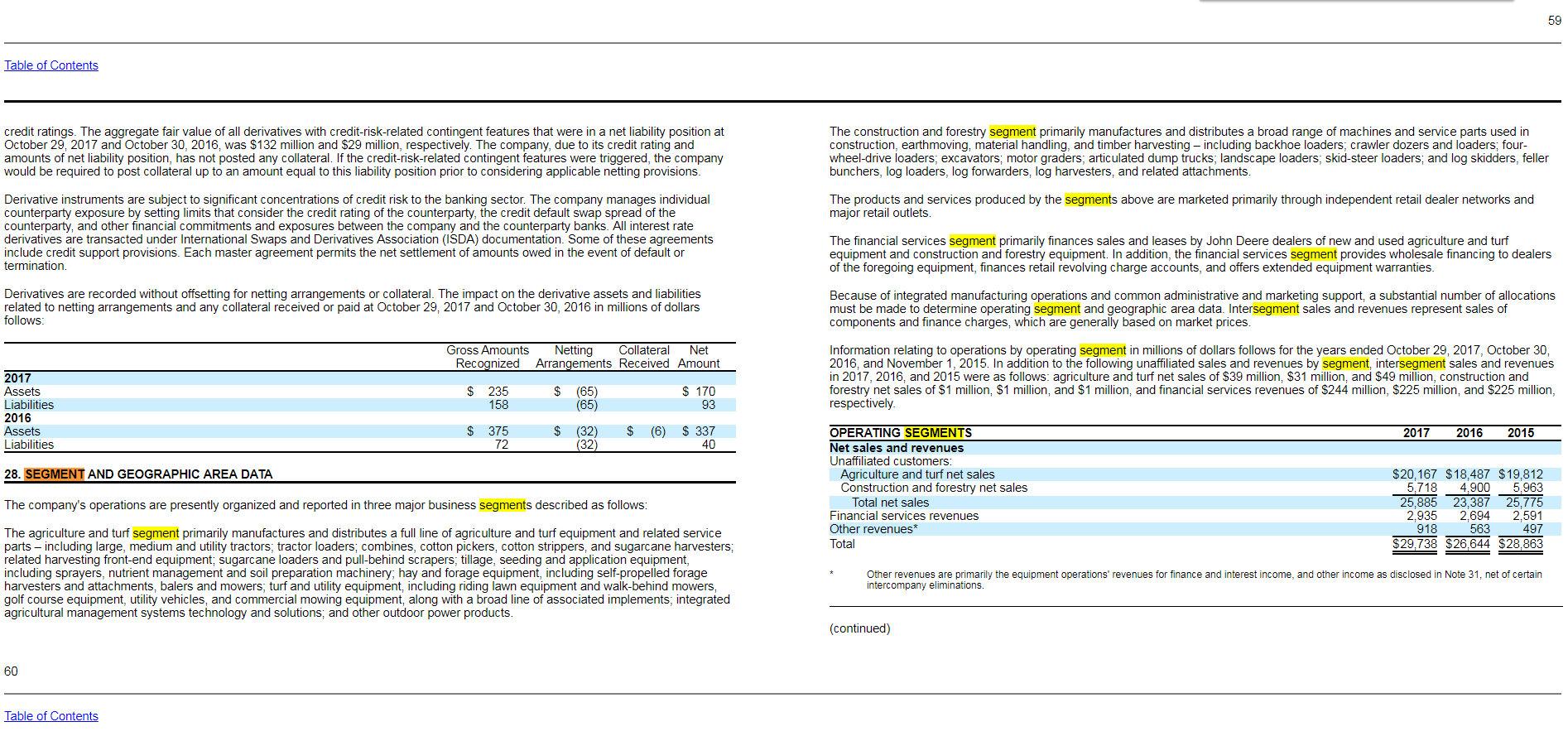 In Contrast, I present John Deere's Disclosure Note on Reported Segments. It's three pages long: