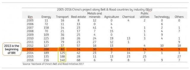 Between 2013, when the BRI was first mooted, and 2016, most investment from China was in the area of transportation.