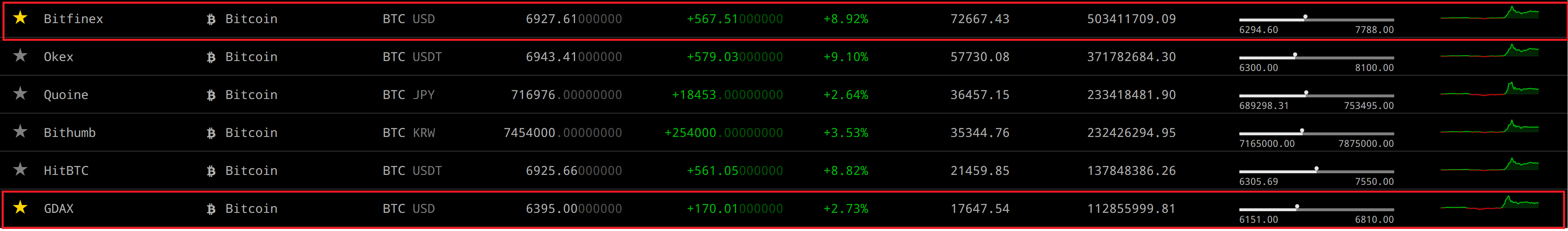 That exchange called "GDAX" is now re-branded as Coinbase Pro (COINB). Look at the premium, yeesh!