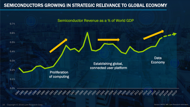 These growth drivers are adding up and semiconductors are increasingly becoming a larger part of the world economy, as this slide shows: