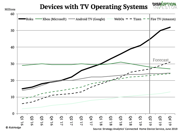 Now Roku is building an operating system for TVs and licensing it to TV manufacturers. This is the part of its business that's EXPLODING and shows little sign of slowing down…
