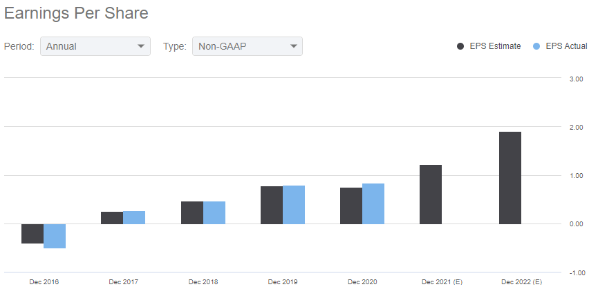 The amount of growth the company has seen is absolutely staggering, as seen above. Revenue more than doubled last year as the pandemic took hold and accelerated Square's adoption among consumers and small businesses in particular. Square is expected to add more than $4 billion in revenue this year and another ~$2.5 billion next year.