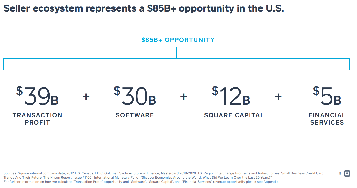 The Seller business is what I just discussed and you can see the massive list of services the company provides to customers. It really is a one-stop solution for businesses of all sizes, with small businesses likely seeing the highest value proposition from buying the Square ecosystem.