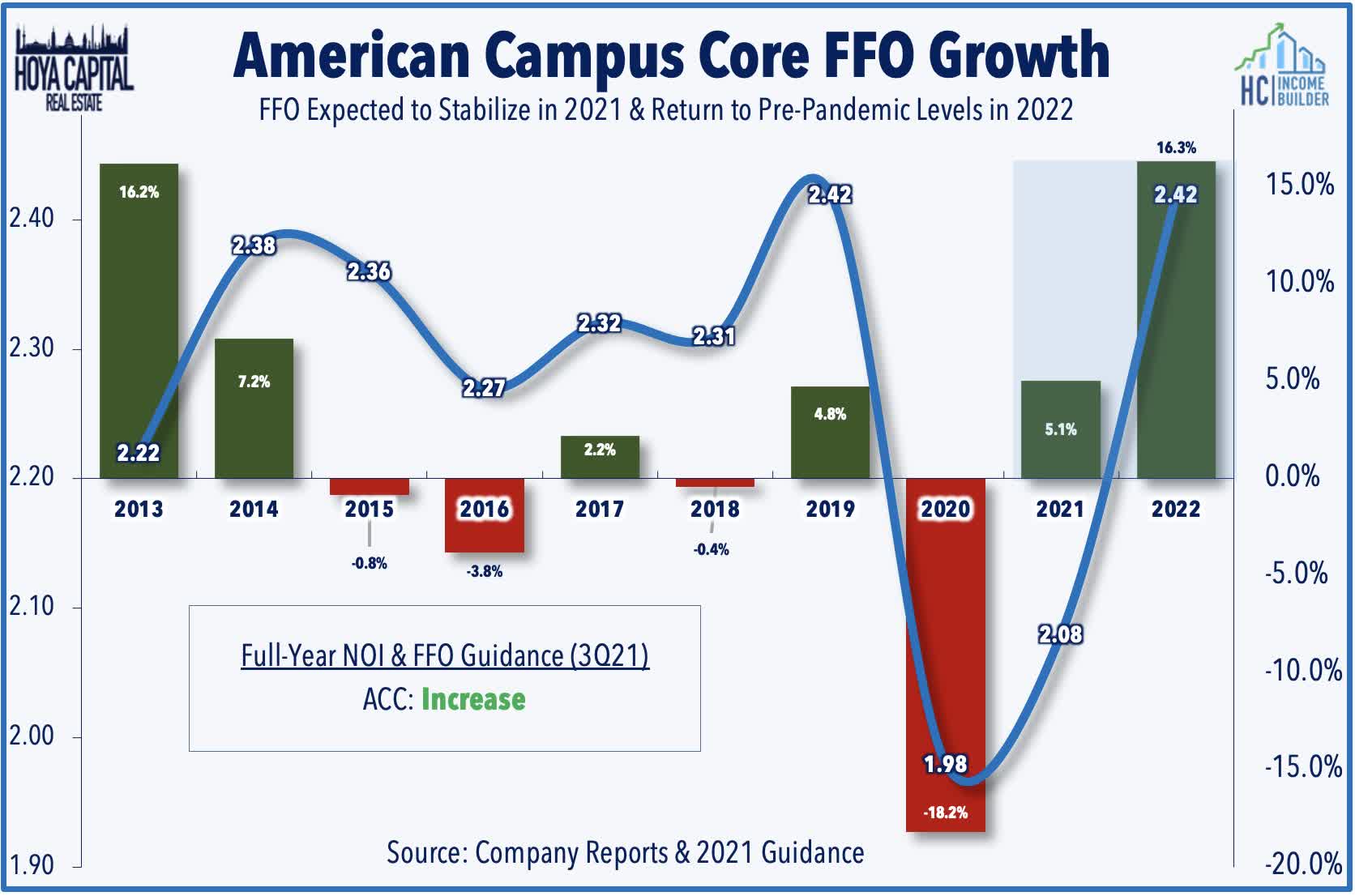 - American Campus Communities - along with the broader student housing sector - have delivered a swifter-than-expected rebound as students at flagship universities returned to campus for the 2021-2022 academic year.
