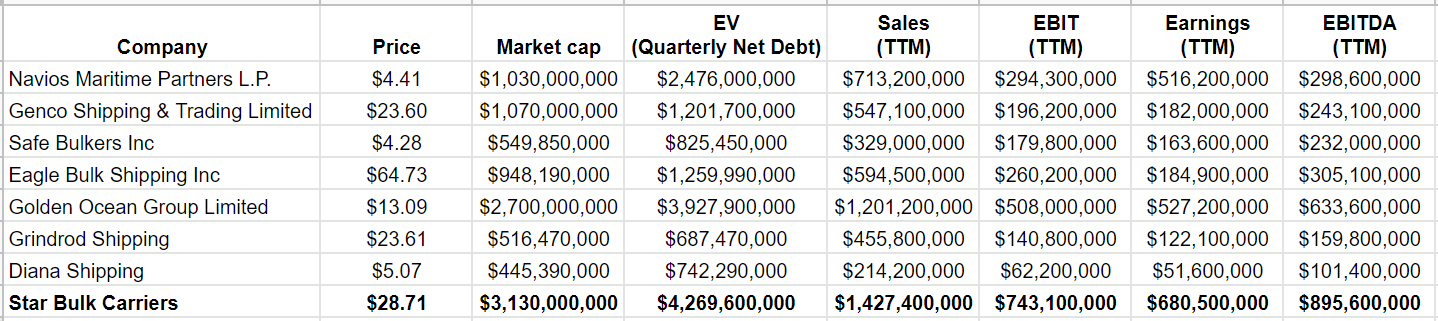 Table 2 – SBLK and its peers