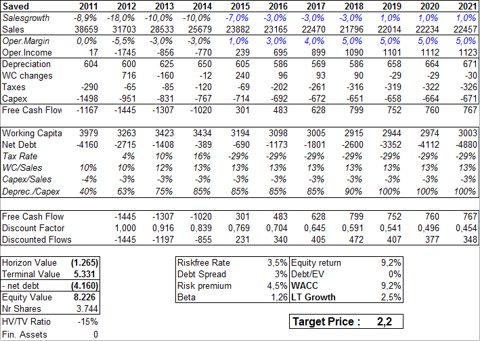 Nokia (NYSE:NOK) is valued as a binary call option on Windows 8 success. The market expects steep unit sales declines as Nokia has made some big mistakes. However, this trend is accelerated by expected declines of Nokia Average Selling Prices. I believe that an improvement in product mix will contradict the latter. My model for Nokia ASP evolution and my DCF show the share price can triple. Lately, analysts have struggled with the Nokia valuation.