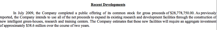 - Greenhouse facilities are “low tech” and messy. It doesn’t look like it’s going to cost anywhere close to the $38M proposed investment! The facility is located in the middle of some undeveloped rural region, not an "industrial" park as management claimed on its 4th quarter conference call.